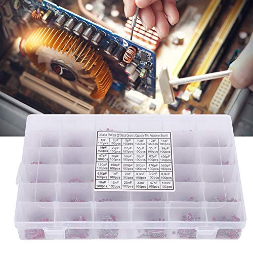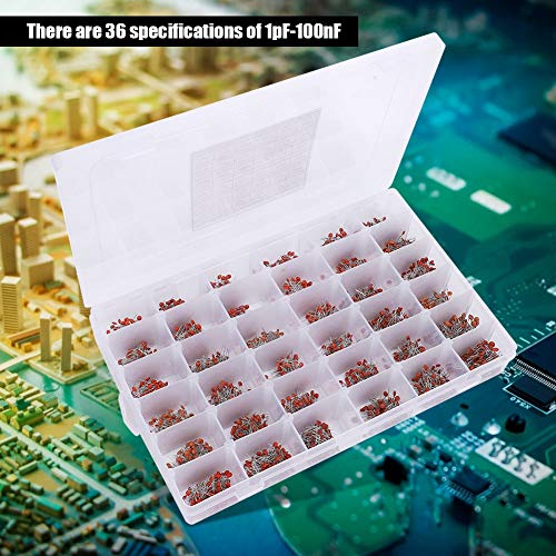 Condensatori, kit assortimento condensatori ceramici 3600 pezzi, 1pF-100nF, 36 valori, 50 V, con scatola, componenti elettrici