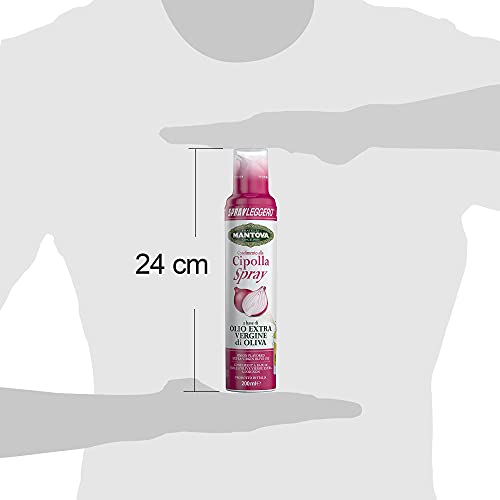 Condimento alla Cipolla spray a base di Olio Extra Vergine di Oliva. Il gusto pungente e morbido della Cipolla incontra il pregiato Olio Extra Vergine di Oliva Mantova, per dar vita ad un eccellente e gradevole condimento.