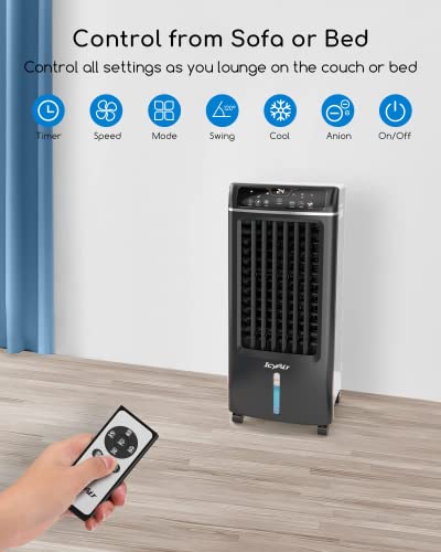 Condizionatore Portatile, 4-in-1 Raffreddatore d'Aria Evaporativo, Purificatore, Umidificatore, Ventilatore con 3 Modalità, 3 Velocità, 7H Timer, Telecomando, Serbatoio 4.5L, 550m³/h per Casa Ufficio