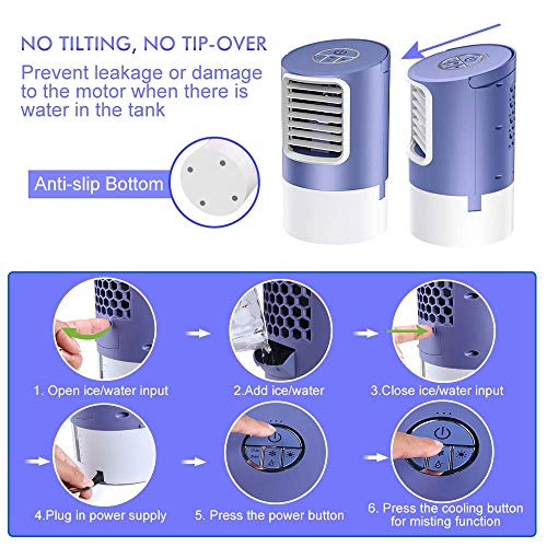 ❄️【3-in-1 Multifunzionale】-- Il design multifunzionale 3 in 1, il nostro mini ventilatore portatile può essere utilizzato come un condizionatore d'aria, ventilatore da tavolo e purificatore e umidificatore d'aria. Raffreddamento, umidifica per una migliore aria, il design di raffreddamento lo allontana dalla calda estate, goditi la tua fresca estate.