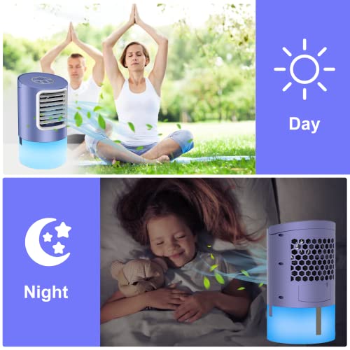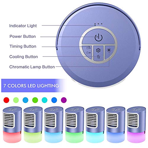 Condizionatore Portatile, Fychuo Mini Raffreddatore d'aria 3 in 1 Air Cooler Condizionatore Umidificatore Ventilatore, 2 Timer, 3 Velocità, 7 Colori Luce per Casa/Ufficio