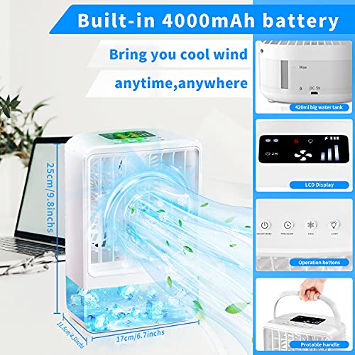 Condizionatore Portatile, Kedoxi Raffreddatore D'aria Ventilatore con Batteria, Condizionatore Portatile Senza Tubo per Casa e Ufficio Picnic Camper, Personale Air Cooler 3 Velocità 2 o 4H Timer