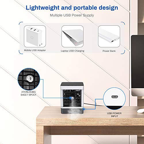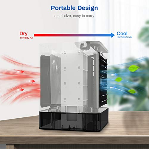 Mini condizionatore d'aria, raffreddatore d'aria evaporativo personale portatile 4-in-1 raffreddatore d'aria, ventola di raffreddamento ad aria a doppia ventola per casa, ufficio