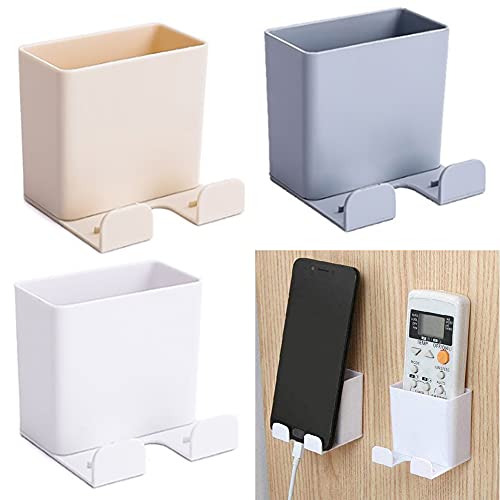 Condizionatore per telecomando TV con porta cellulare da parete e porta cellulare a 3 pezzi, bianco albicocca, grigio