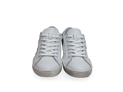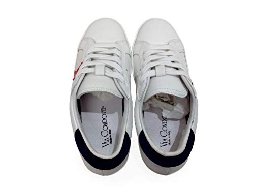 VIA CONDOTTI Scarpe Sneakers Basse Uomo Pelle Bianca bucherellata Stella Blu