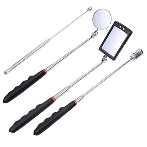 4pcs Ha Condotto Telescopico Ispezione Specchio Rettangolare / Round Pick-up Magnetico Strumento Allungabile Furgone Stick Con Il Magnete, Penna Recupero Magnetica Per Recuperare Oggetti Metallici