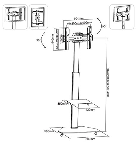 Altezza regolabile: 1200 mm - 1800 mm, capacità di carico fino a 40 kg (staffa) + 5 kg di capacità di carico (ripiano)
