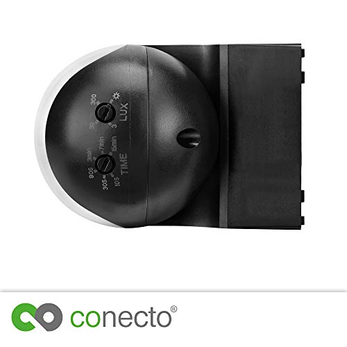 Conecto CC50215-2 Rilevatore di Movimento a infrarossi (CC-IM080) Installazione Interna/Esterno, orientabile, IP44, Area di Lavoro 180°/12 m, Nero, Confezione da 2