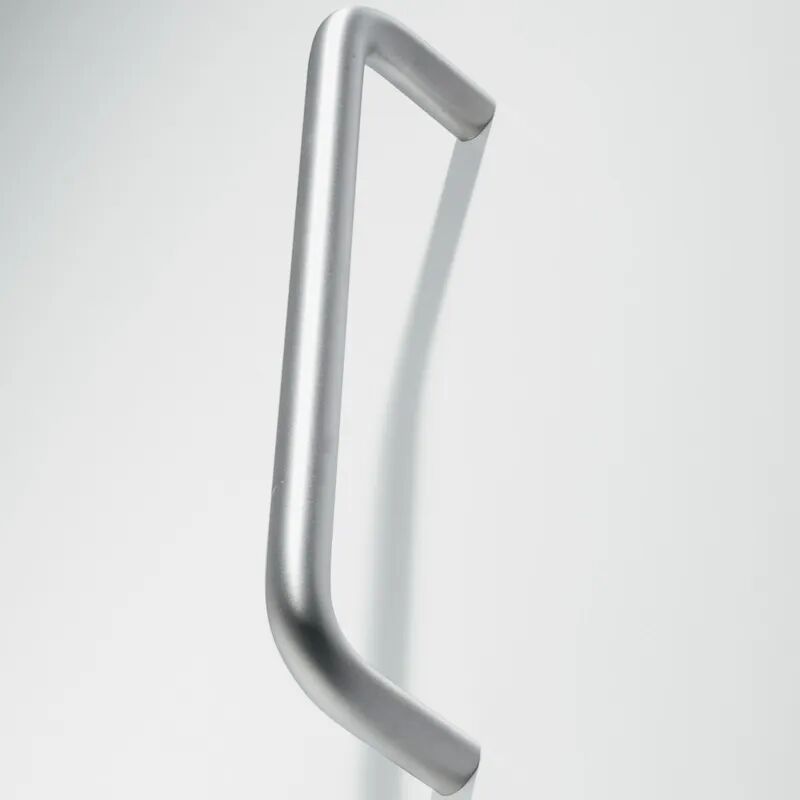 Maniglia per mobile in metallo interasse mm.96. Finitura nichel satinato.