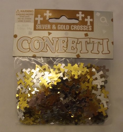 Confettis Metallic Silver and Gold Crosses by Amscan