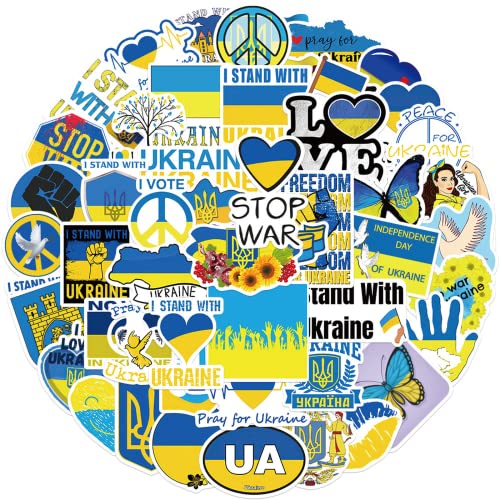 Confezione di 50 adesivi per auto con bandiera ucraina Ucraina bandiera mappa divertente decalcomanie per laptop, tablet, bagagli, mini adesivi