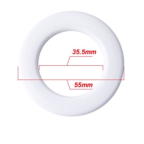 Confezione da 20 anelli per tende, rotondi a pressione, diametro interno: 35,5 mm, diametro esterno: 55 mm bianco