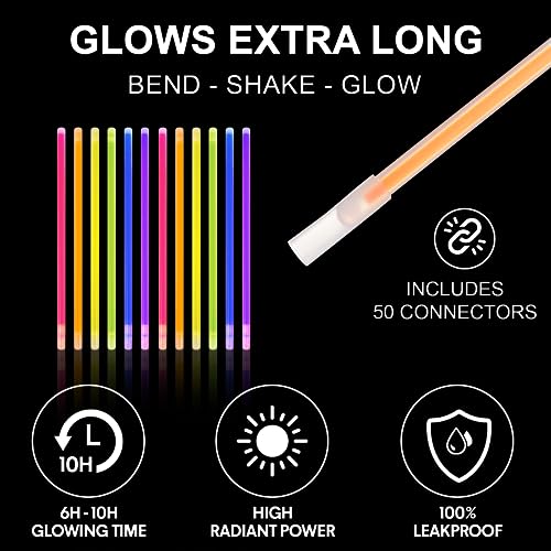 ꧁Qualità Superiore꧂ Questi bastoncini luminosi durevoli sono realizzati con materiali di alta qualità, non tossici e difficilmente infiammabili. I connettori di alta qualità sono facili da piegare senza rischio di rottura. Garantiscono un tempo di illuminazione di 6-10 ore, permettendoti di goderti la festa per tutta la notte senza preoccuparti che si scuriscano.