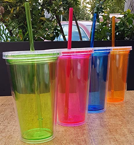 【 4 bicchieri in acrilico per bevande 】 freddi con coperchio e cannuccia design molto pratico per bere latte frullato caffè o succo gelato, ecc. Ideale per tutte le bevande estive: frullati, frullati, gelati, frullati, succhi di frutta, cocktail e molto altro ancora. Mantieni la tua bevanda fresca e fresca mentre sei fuori o a casa.