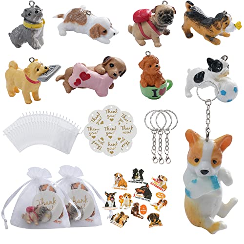 Confezione da 46 Bomboniere per Cuccioli di Cane 9 Pezzi Set Gioco con Figurine Cani Figure Plastica Realistici Carini Portachiavi Sacchetti Ringraziamento Biglietto Cake Topper Regalo Compleanno