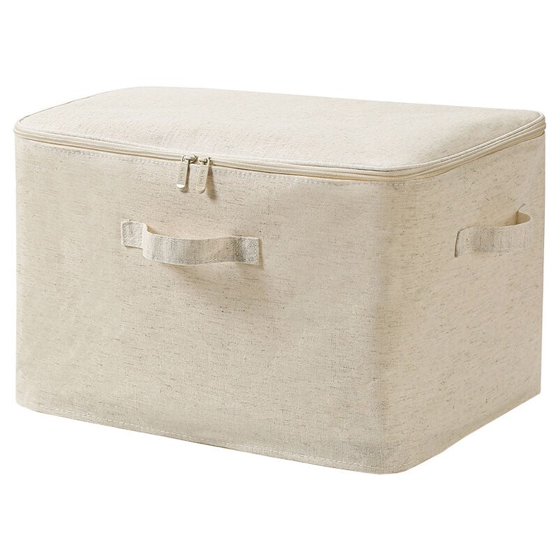 Dimensioni della maniglia della borsa di stoccaggio super resistente. Taglia: 50*40*35 cm Materiale: tessuto di cotone e lino, antipolvere e lavabile. Archiviazione perfetta per lo shopping, i viaggi, il campeggio, le decorazioni per le vacanze, i traslochi e altro ancora. Il design della cerniera rende facile entrare e uscire.