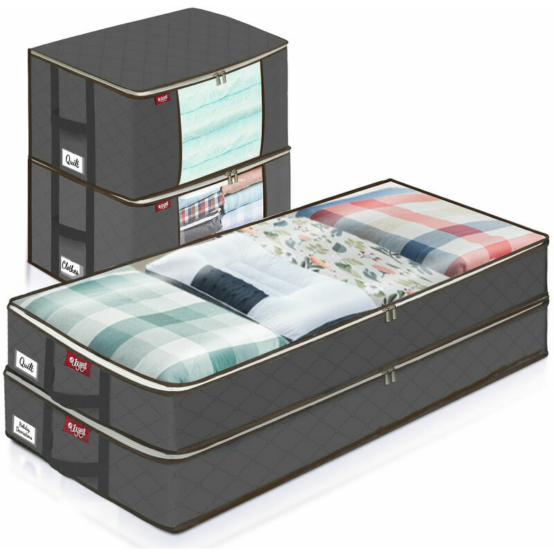 Si prega di leggere attentamente il titolo prima di ordinare 【GRANDE CAPACITÀ】 JOYXEON Confezione da 4 Le borse per la conservazione dei vestiti sono disponibili in 2 diverse dimensioni. Borse portaoggetti misurano 23,6 x 17,1 x 11,81" e misura 81 l, che può contenere 1 piumino king-size o 3-5 cuscini, 6 coperte o più di 35 pezzi di < br /> vestiti. Le borse sotto il letto misurano 39,4' x 17,1' x5,4' e misura 67,5 l, perfetto per carichi più grandi, peluche, cuscini, coperte, vestiti di grandi dimensioni. Ottieni 4 borse! ✔【DESIGN MIGLIORATO E FORTE】 Le borse portaoggetti sotto il letto JOYXEON hanno maniglie a forma di H aggiornate, che rendono il punto di pressione disperso. La sua capacità di carico massima è di 15 libbre. Non preoccuparti mai delle fragili maniglie, molto resistenti e perfette per spostare oggetti a breve distanza. Inoltre, questi contenitori sono dotati di doppie cerniere #5 in acciaio inossidabile . Non importa quanto sia piena la borsa, è facile far scorrere