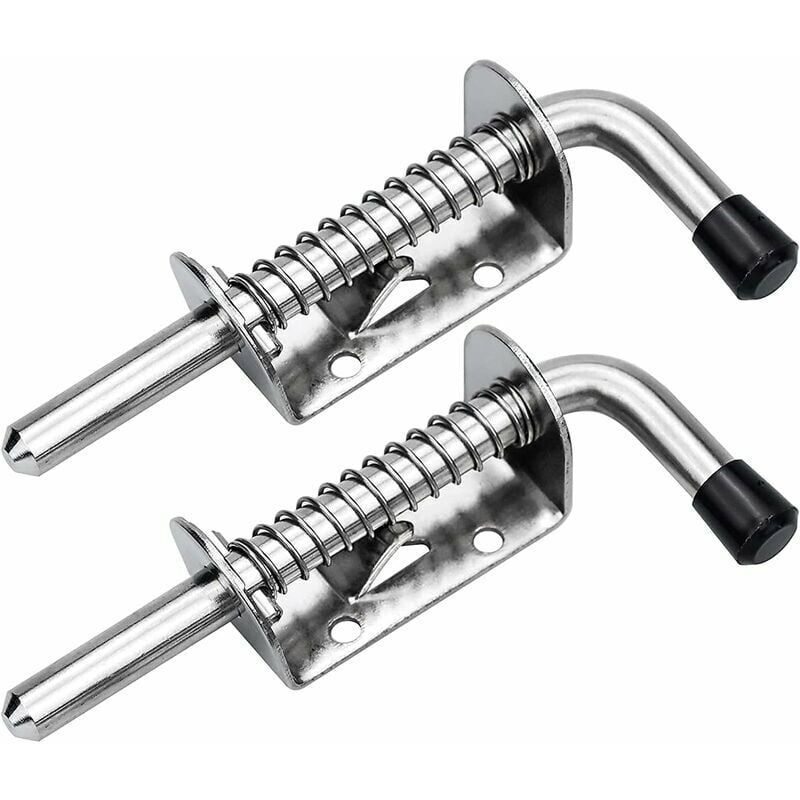 La confezione include: riceverai un set di chiavistelli a molla con 2 serrature per porte a molla, 128 mm di lunghezza, 47 mm di altezza e 10 mm di diametro, che possono soddisfare bene le tue esigenze quotidiane. Materiali di alta qualità: i nostri bulloni a molla sono realizzati in ferro zincato di alta qualità, resistente e durevole. Il film di ossido sulla superficie può impedire la ruggine del fermo della porta, non è facile da danneggiare e può mantenere buone prestazioni anche in caso di maltempo. Facile installazione: puoi scegliere il luogo che desideri installare e praticare 4 fori in anticipo. Il diametro del foro è di 5 mm. Basta avvitare il bullone della serratura alla porta o alla finestra e regolare il diametro del perno scorrevole nella giusta posizione per l'installazione verticale o orizzontale, risparmiando tempo e fatica. Design esclusivo: sigillato e saldato, spesso rinforzato fondo, durevole;