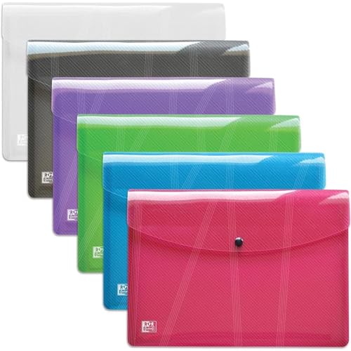 Confezione da 20 buste in polipropilene Hawaii, formato A4, chiusura a pressione, colori assortiti (6)