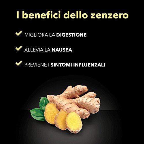 ZENZERO & LIMONE - Ingredienti apprezzati in tutto il mondo per le loro proprietà antinfiammatorie e antiossidanti, migliorano la digestione e fortificano l'organismo. Lo zenzero è una pianta di origini orientali, un tesoro prezioso e ricco di proprietà e benefici per la salute, infatti può distendere i muscoli, favorire la digestione, alleviare la nausea e prevenire i sintomi influenzali. Il limone invece è ricco di potassio e vitamina C che favorisce il sistema immunitario.