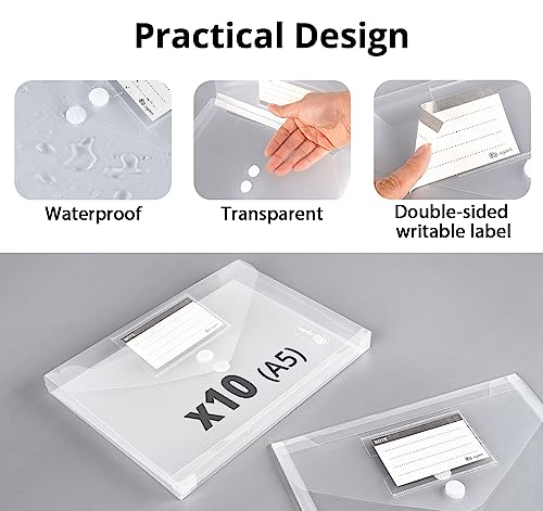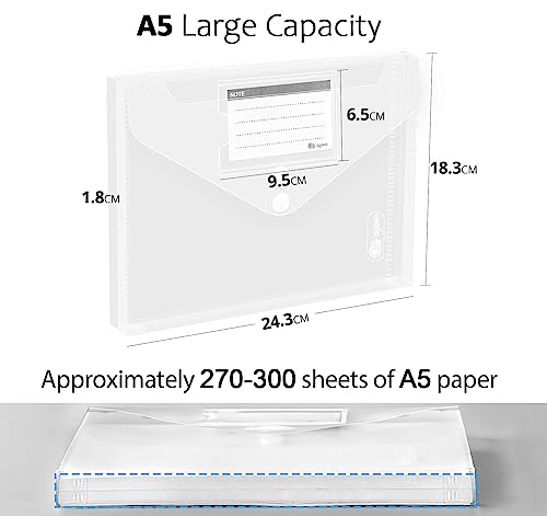 Confezione da 18 cartelle portadocumenti A5, formato A5, tridimensionale con 2 velcro e etichette double face, trasparenti per organizzare documenti, ciascuno fino a 270 fogli di carta