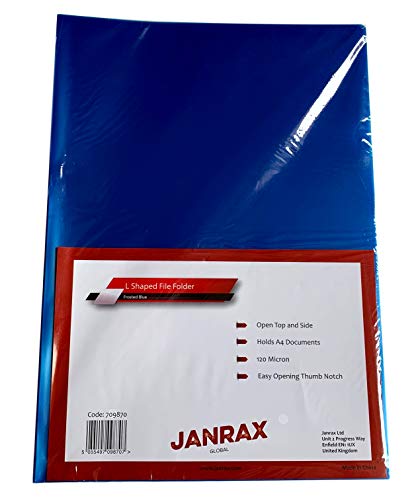 Confezione da 25 cartelline portadocumenti a forma di L, apertura superiore e laterale, formato A4, colore blu