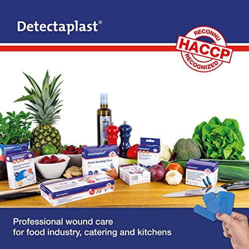 Confezione da 7 cerotti Detectaplast autoadesivi per ferite e lesioni, rotolo di cerotto blu sterile e impermeabile per lavorazioni alimentari, conforme agli standard HACCP e BRC