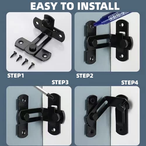 Confezione da 2 chiavistelli ad angolo retto in acciaio inox, con viti, per porte e finestre (7,6 cm, nero)