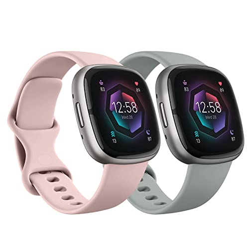 Omee Confezione da 2 cinghie di ricambio compatibili con Fitbit Versa 4/Fitbit Versa 3/Fitbit Sense Cinturino da donna da uomo morbido e traspirante con cinturino in silicone per Fitbit Sense 2
