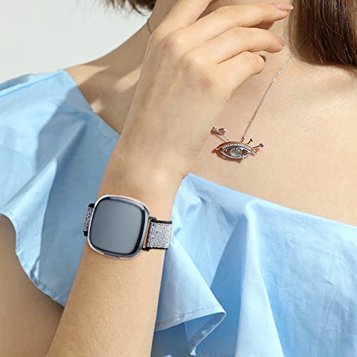 【 Soft Sentive Touch Confortevole Nylon】Le cinghie per Fitbit Versa 4/Sense 2 fasce da donna e ragazza sono realizzate in nylon morbido, traspirante, resistente e di alta qualità. Sono leggeri, lavabili, delicati sulla pelle e comodi da indossare, perfetti per tutti gli allenamenti quotidiani. Questa copertura dell'alloggiamento Sense 2 e Versa 4 non aggiunge molto volume per rimuovere graffi e potenziali danni tutto intorno.