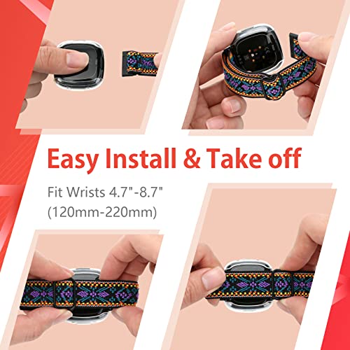 Confezione da 8 cinturini per orologi, 1 custodia compatibile con Fitbit Versa 4/Sense 2, per donne e ragazze, in nylon elastico, traspirante, regolabile, ricambio per Fitbit Versa 4/Sense 2