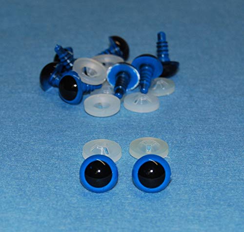 Confezione da 5 paia, colore: Blu occhi con retro in plastica - 12 mm - sicurezza occhi per la realizzazione di peluche o orsetti