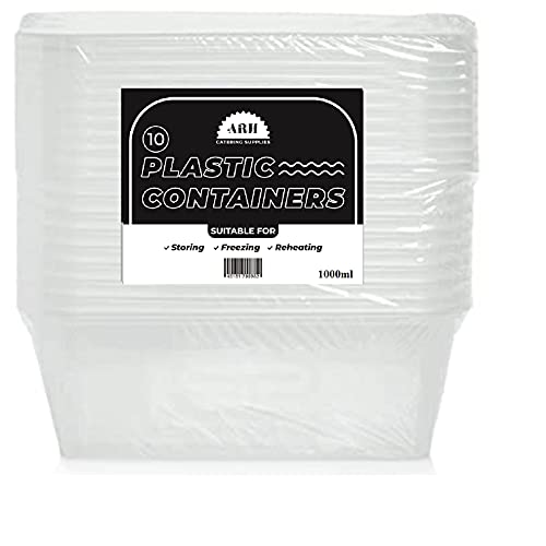 ✔️ Contenitori per alimenti in plastica con coperchio - 10 confezioni da 1000 ml in plastica trasparente con coperchi adatti per lavastoviglie, microonde e congelatore.