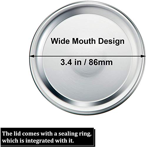【Ampio design della bocca: ogni tappo riutilizzabile a prova di perdite ha un diametro di circa 86 mm, che può essere compatibile con la maggior parte dei barattoli di muratura a bocca larga, non può essere compatibile con altri barattoli o bottiglie di muratore standard.