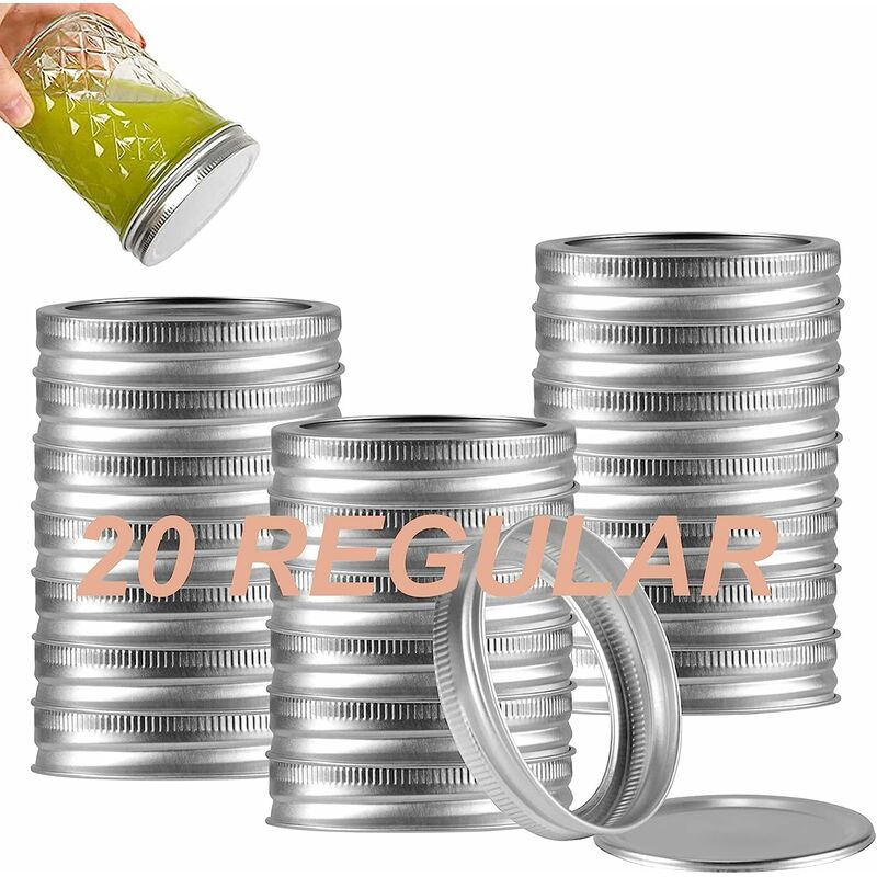 Confezione da 30 cover argento + 30 anelli, che possono essere sostituiti separatamente per un miglior valore economico e soddisfare le tue esigenze. MATERIALE DI SICUREZZA - Le normali palpebre sono realizzate che non si arrugginiscono facilmente ed è privo di BPA. Resistente alle alte e alle basse temperature. Buona tenuta - Guarnizione in gomma incorporata nel cappuccio, i coperchi sono installati più stretti. È un buon aiuto per la cucina e l'arredamento della casa. Ampiamente usato: questi coperchi per barattoli a bocca standard sono adatti per conservare marmellate, biscotti, bibite gassate, caramelle, ecc., in modo che il cibo possa essere conservato a lungo senza inquinamento dell'aria. Garanzia di qualità - Se non sei soddisfatto dei nostri coperchi dei barattoli di vetro, supportiamo i resi dei pacchi. Ti auguriamo una buona esperienza di acquisto. Caratteristiche: Dimensioni: 7 cm. Contenuto: 30 coperchi per conserve + 30 anelli. Istruzioni: Tappo diviso, per aprire più