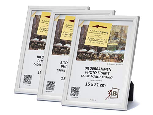3-B Confezione da 3 Cornici per foto JENA - bianco - 15x21 cm (A5) cornice in legno esotico con vetro acrilico