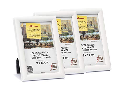 3-B Confezione da 3 Cornici per foto ULM 9x13 cm - bianco - Portafoto in legno con vetro acrilico