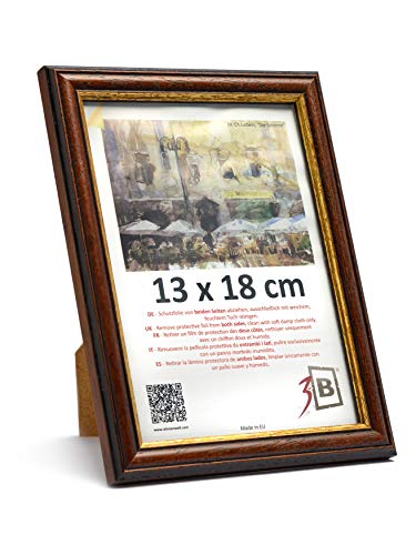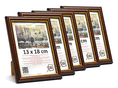 3-B Confezione da 5 Cornici per foto BARI RUSTICO - marrone scuro/oro - 13x18 cm cornice in legno esotico con vetro acrilico