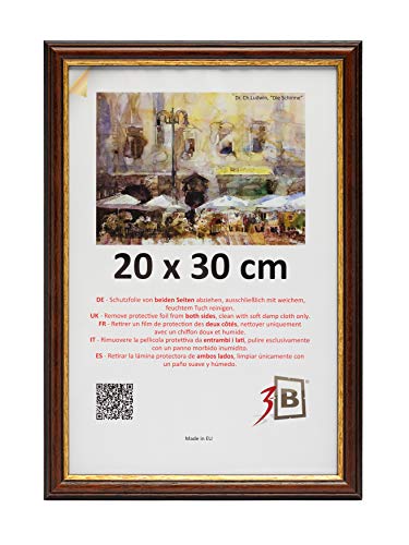 3-B Confezione da 2 Cornici per foto BARI RUSTICO - marrone scuro/oro - 20x30 cm cornice in legno esotico con vetro acrilico