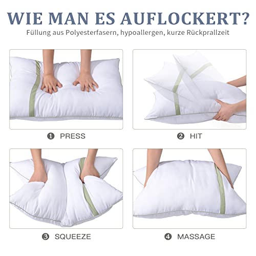 Cuscino ipoallergenico: i nostri cuscini imbottiti in fibra cava super peluche sono incredibilmente morbidi e soffici. Ha funzione ipoallergenica e antiacaro. Design ergonomico e altezza ragionevole che può adattarsi alle curve naturali del corpo, fornendo un adeguato supporto alla testa, al collo e alle spalle.