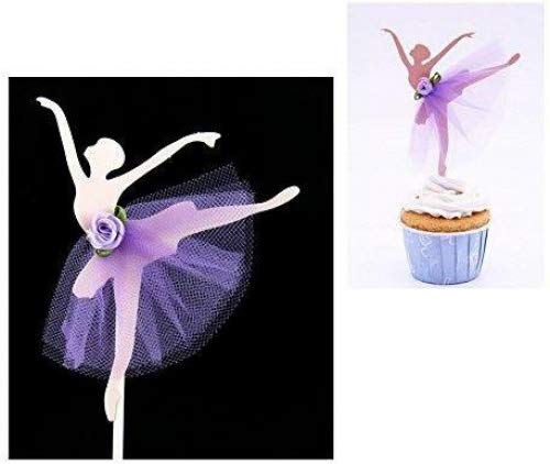Confezione da 6 decorazioni per cupcake con una ballerina, di colore viola, adatte per compleanni