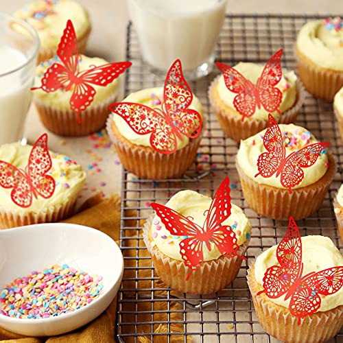 Confezione da 36 decorazioni per cupcake a forma di farfalla in 3D con brillantini rossi per decorazioni da parete per compleanni, matrimoni, farfalle, per sfondo e decorazione da parete