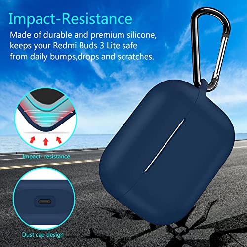 Confezione da 2 - EasyBee Cover Custodia in Silicone + Moschettone, Compatibile con Xiaomi Redmi Buds 3 Lite Cuffie Bluetooth, Protezione Completa Antiurto - Nero e Blu