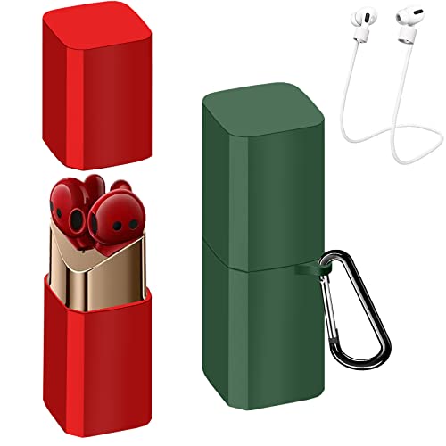 Confezione da 2 - EasyBee Cover Silicone + Moschettone + Cinturino Anti-perdita, Compatibile con Huawei Freebuds Lipstick, Custodia Protettiva Antiurto - Rosso e Verde