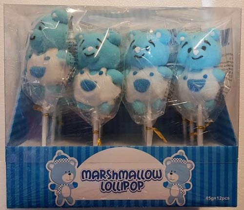 Confezione espositore lecca mallow marshmallow gusto fragola orsacchiotti azzurri con salopette 12pz 45gr Rossini's