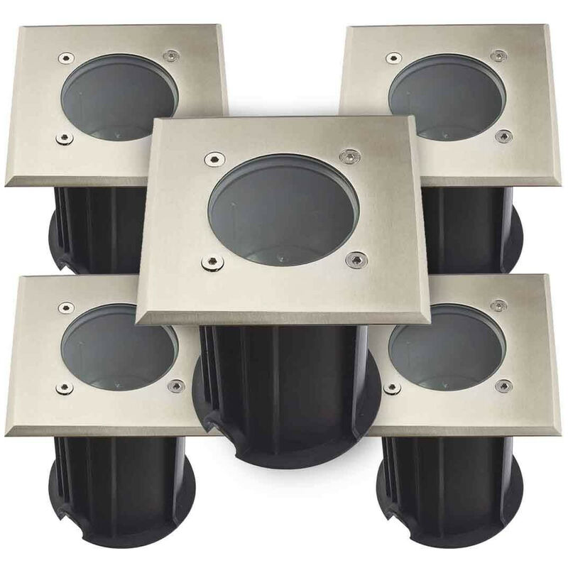 Compatibile con lampadine GU5.3 in 12V: Questo pacchetto di 5 supporti spot da incasso consente di illuminare lo spazio con le lampadine GU5.3 a vostra scelta. Funzionamento in 12V, lampadina non inclusa. Protezione impermeabile: Con una valutazione IP67, questo pacchetto di 5 supporti è impermeabile, permettendo l'uso sicuro in aree esterne o in zone umide. Offre una protezione affidabile contro l'infiltrazione dell'acqua. Dimensioni: Con una foratura da 98 mm, questi supporti recessivi di 120 mm di larghezza e 142 mm di altezza possono essere facilmente installati sul terreno, offrendo una soluzione di illuminazione pratica ed estetica. È fornito con un cavo di 30 cm. Morbida diffusione della luce: Il supporto è dotato di un diffusore depoliticizzato, garantendo una diffusione uniforme e morbida della luce. Questo crea un'atmosfera piacevole ed evita l'abbagliamento. IK08 Body Spot: realizzato in acciaio inox 316, questo supporto spot da incasso è robusto e resistente alla