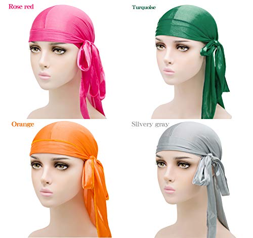 Funzione: dotato di una coda lunga, consente di creare diversi stili. Durag setoso funziona per creare e mantenere le onde, mantenendo lo stile dei capelli, coprendo anche la testa, ampie applicazioni proteggendo la testa e il collo dal sole
