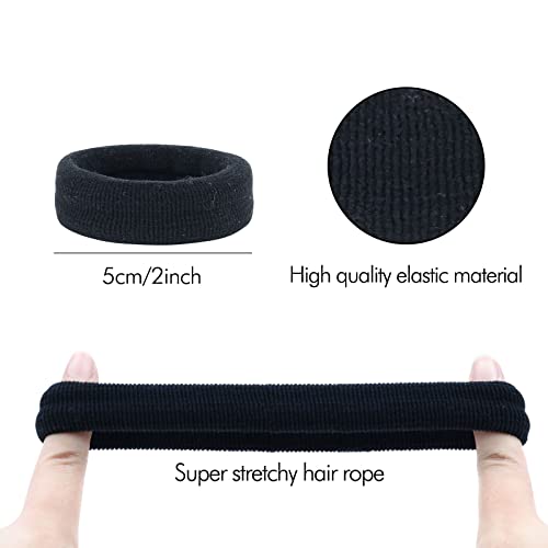 Confezione da 20 fascette elastiche nere in spugna lavorata a maglia, elasticizzate, larghe e spesse, anelli per coda di cavallo, accessori per capelli attorcigliati per donne e ragazze