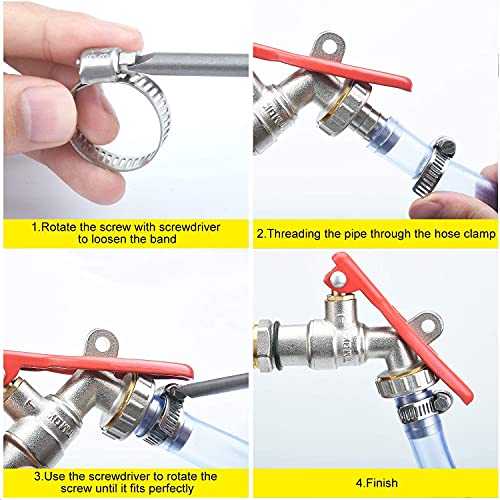 【Facile da usare】 Allentare o serrare la vite delle fascette stringitubo con un cacciavite, quindi infilare il tubo attraverso la fascetta stringitubo e regolare le dimensioni per adattarle al tubo, infine serrare la vite. (La confezione non include un cacciavite)