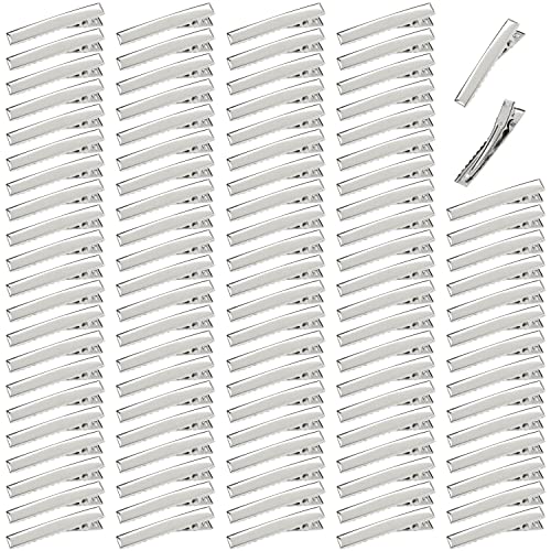 Confezione da 100 fermagli per capelli a coccodrillo in metallo color argento, 40 mm, per acconciature e acconciature fai da te, per donne e ragazze